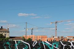 C'est un étrange paysage que les promeneurs pouvaient découvrir pendant la période de construction. Il n'était pas rare de voir ici ou là une zone de friche, un hangar abandonné ou un bâtiment dépouillé côtoyer une construction neuve pratiquement terminée.