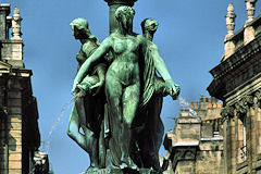 Ainsi, sous un beau ciel bleu on ne peut que constater qu'Euphrosyne, Aglaé et Thalie (les 3 Grâces) étaient franchement vertes et qu'en haut de la colonne des Girondins l'ange de la liberté était bien loin de son aspect actuel. Tout aussi surprenant, Notre Dame d'Aquitaine au sommet de la tour Pey Berland n'avait pas sa teinte or d'aujourd'hui mais des tons franchement vert de gris.