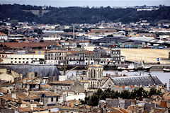 Plus que jamais, il est utile de cliquer sur les vignettes pour découvrir les images en plus grand. On pourra ainsi mieux distinguer comment les quais étaient alors pavés et surtout coupés de la ville par un muret et des barrières. On remarque aussi la place de la voiture, parking à ciel ouvert sur les quais et parking aussi près du Fort du Hâ. On peut d'ailleurs observer sur cette perspective réalisée depuis la tour Pey Berland comment se dessinait le quartier Ornano - Albret - Meriadeck alors que le Tribunal de Grande Instance actuel n'existait pas encore.