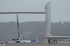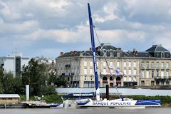 Un habillage spécial du bâtiment d'une grande banque située sur la rive droite, un imposant catamaran amarré au pied de la même banque, la visibilité pour ce concurrent est optimale. C'est pourtant bien à bord du même Béneteau que les autres skippers qu'Armel le Cléac'h s'élancera le 2 juin dans la Solitaire du Figaro.