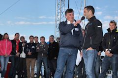 C'est sur la grande scène implantée sur le miroir d'eau, et en présence d'Alain Juppé, qu'ont été présentés les concurrents engagés. Pour cette édition 2013, il y aura 42 skippers au départ avec la participation de Claire Pruvot qui sera la seule femme en course sous les couleurs du Conseil Général du Calavados.