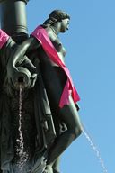 Le parking souterrain étant terminé l'emplacement destiné à accueillir à nouveau la fontaine des 3 Grâces est délimité. C'est au cœur de l'hiver 2006 (le 5 janvier pour être précis) que les filles de Zeus ont fait leur retour. L'échafaudage n'était pas encore enlevé que la neige s'invitait.