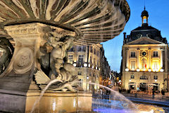 Sur cette carte postale ayant voyagé en 1917, seul l'environnement de la fontaine des 3 grâces a changé. La fontaine n'est pas en eau ce qui semble indiquer que la photo a été prise en hiver, tout comme la plate bande ceinturant le bassin qui est dépourvue de plantes. La véritable différence entre le début du XXe siècle et nos jours se situe du coté des quais. Les hangars du port ont cédé leur place au jardin des lumières et désormais il y a assez peu de chances de croiser sur les quais des attelages transportant des tonneaux de vin.