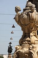 De la même façon, lorsqu'on est au pied de la fontaine place du Parlement, en suivant l'alignement des lampadaires de la rue Fernand Philippart, le regard se pose inévitablement sur la fontaine des 3 Grâces.