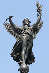 - Au sommet de la colonne l'Ange de la Liberté brisant ses fers