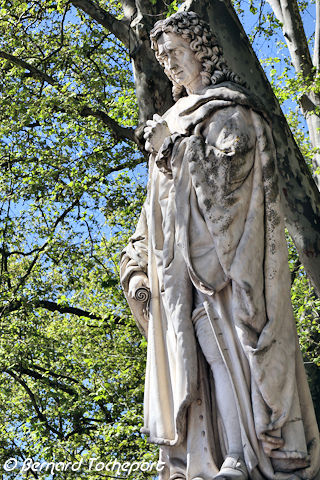 Statue de Montesquieu et feuillages de printemps place des Quinconces à Bordeaux | Photo Bernard Tocheport