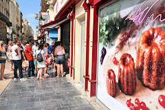 Aujourd'hui, mis à part le canelé (cannelé) la spécialité bordelaise qui est représentée par Baillardran et la Toque Cuivrée, les enseignes locales se font rares. Même s'il subsiste encore bon nombre de petits commerces indépendants, on retrouve désormais la plupart des mêmes enseignes que dans les galeries marchandes à la périphérie des villes. Des enseignes qui côtoient les boutiques de vêtements, de téléphonie, ou les sandwicheries.