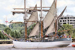 Reconnaissable à sa coque noire épaisse et à des voiles carrés, le Kaskelot est venu à Bordeaux lors de l'édition 2018 de Bordeaux Fête le Vin qui correspondait aussi avec l'étape de la Tall Ships Regatta.